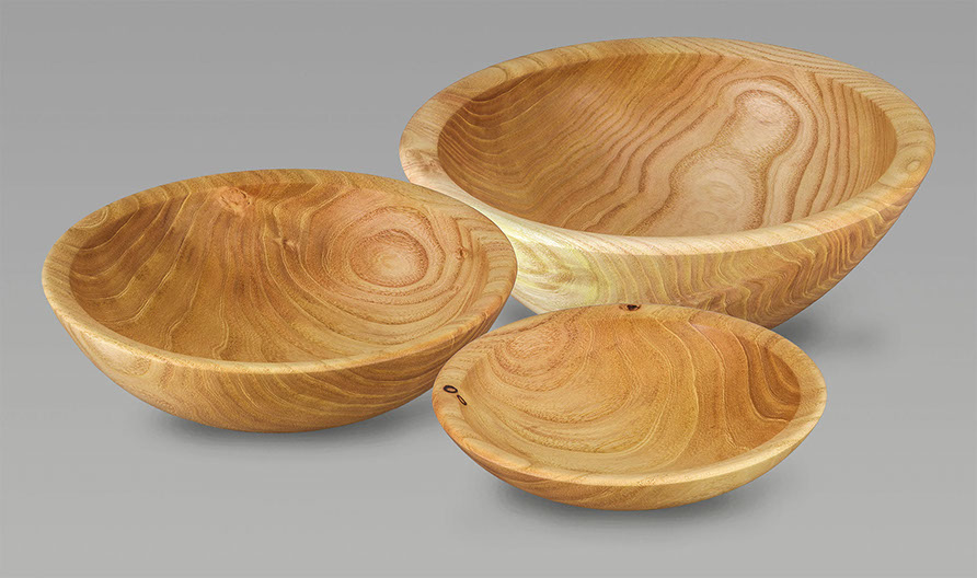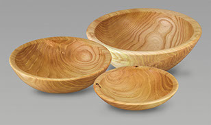 This set of 3 bowls were all made from one piece of Honey Locust. This guarantees a perfect grain and color match throughout all 3 bowls.